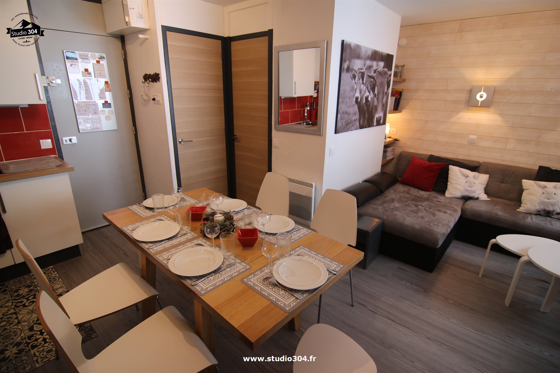 Appartement de charme dans la station de Plagne BELLECOTE, 35 m², décoré dans l'esprit chalet de montagne..