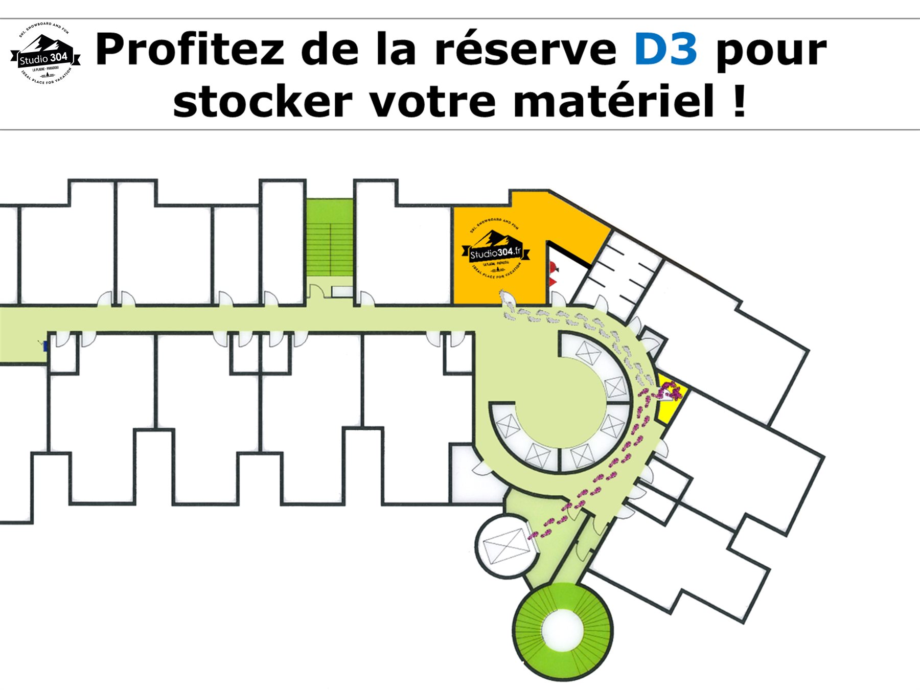 Incluse dans la location de l'appartement 304, la réserve D3 vous permet de stocker tout matériel encombrant et profiter ainsi pleinement de l'appartement.