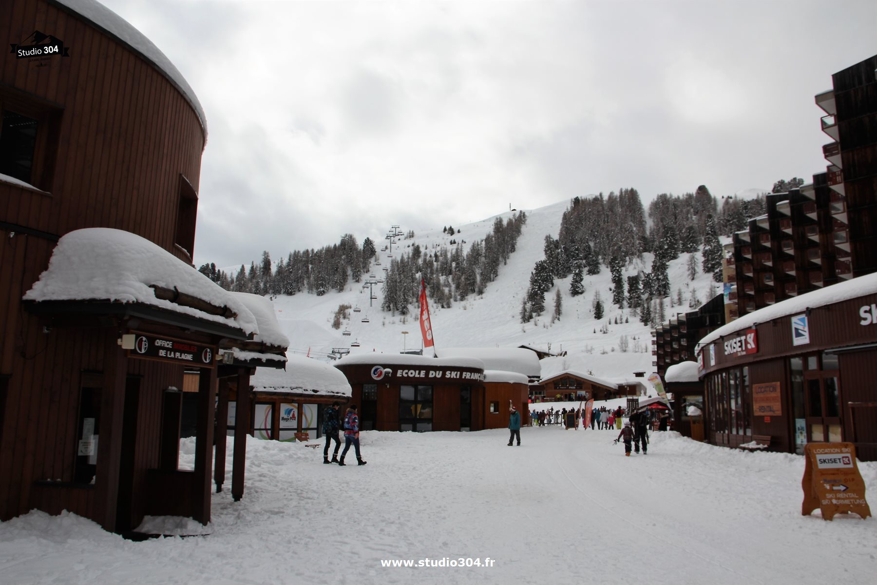 Au pied des pistes, au coeur du domaine PARADISKI-La Plagne, à proximité de tous les commerces et à 100 m de la télécabine du Glacier et de 3 télésièges à fort débit en destination des Arcs, de Plagne Centre et de la Roche de Mio.
